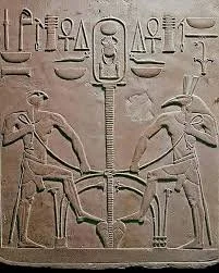 The Sema-Tawy, “The Union of the Two Lands”, an image representing the union of Lower and Upper Egypt, symbolizing the unification of spiritual and material worlds. The “Sema” hierogylph is the lungs and trachea, meaning “union”, signifying that breath cultivates a relationship between essence and personality.